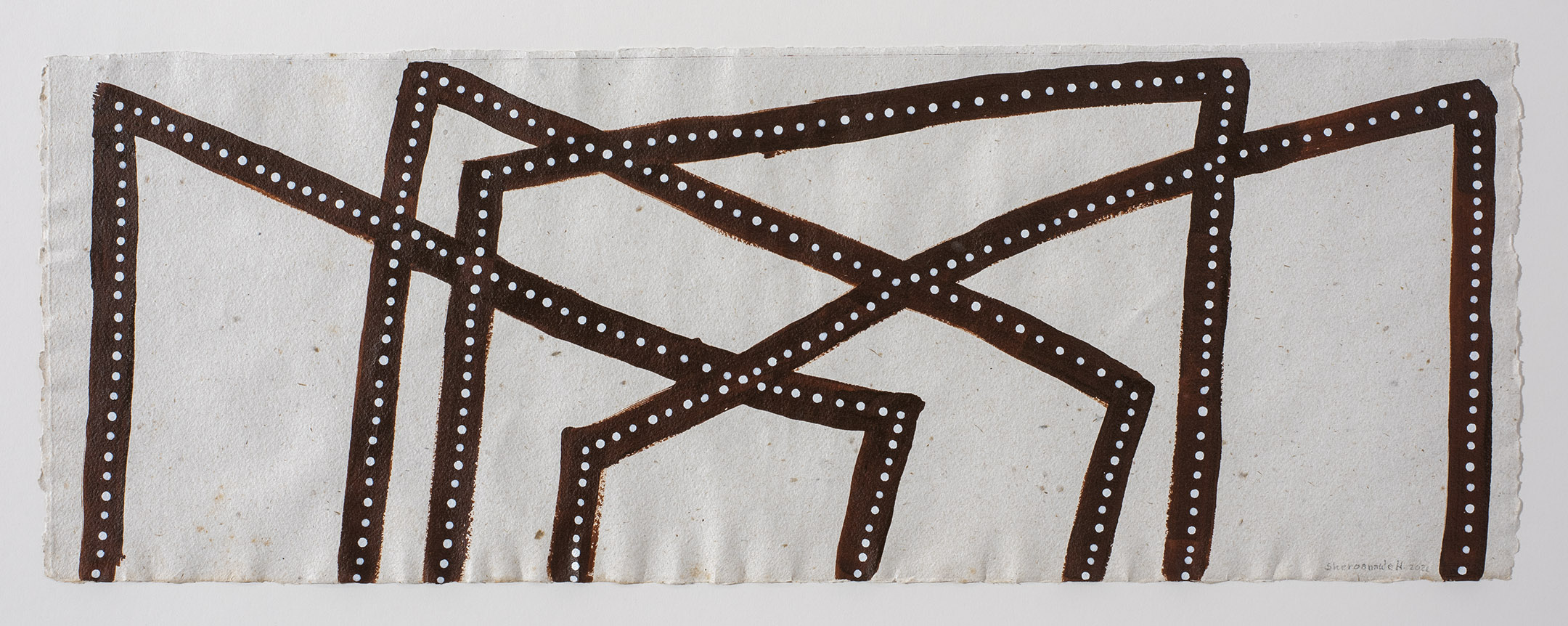 He auma peno maig komi II (Camí de formigues cap blanc II) Pintura. Acrílic sobre paper de cotó 26 x 71,5 cm. 2021